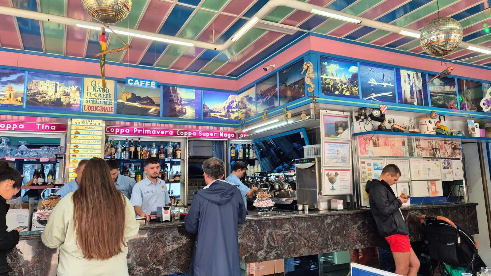 The Super Mago del Gelo bar in Polignano a Mare is located in Piazza Garibaldi and pumps out coffees (€1.10) and gelati all day, every day. Founded by Mario Campanella, the venue is plastered with images of visiting celebrities including Pippo Baudo, Gianni Morandi and Michele Placido.