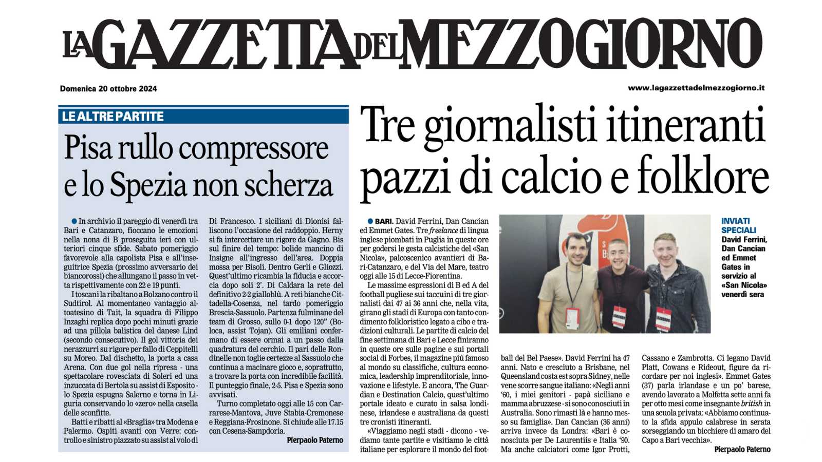 Pierpaolo even wrote about Destination Calcio’s fascination with Italian football in La Gazzetta del Mezziogiorno, one of southern Italy’s most acclaimed publications.