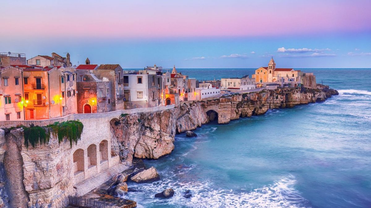Puglia’s coastline stretches for over 500 miles, offering a wide array of beaches from sandy shores to rugged cliffs. The Gargano Peninsula, a national park on Puglia’s northern coast, is home to some of the region’s most dramatic landscapes, with forests, limestone cliffs, and hidden coves that beckon exploration. The beach at Vieste, with its soft sand and clear water, is a favourite among visitors looking for a relaxing day in the sun.