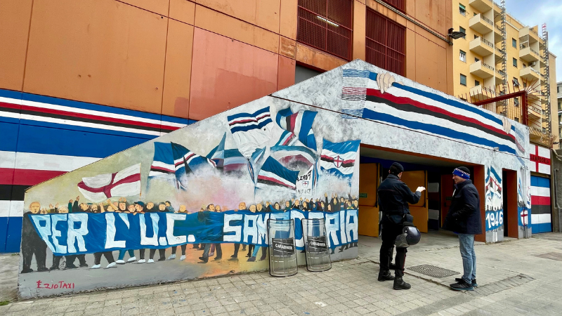 Make no mistake, this rivalry is one of the most ferocious in Italian football. This territorial battle plays out on street signs, lamp posts, and bridges throughout the city, each embellished with the colours of one team or the other. At the time of visiting, Sampdoria had just emerged from a stadium ban imposed due to violent clashes between the two fanbases during the derby.