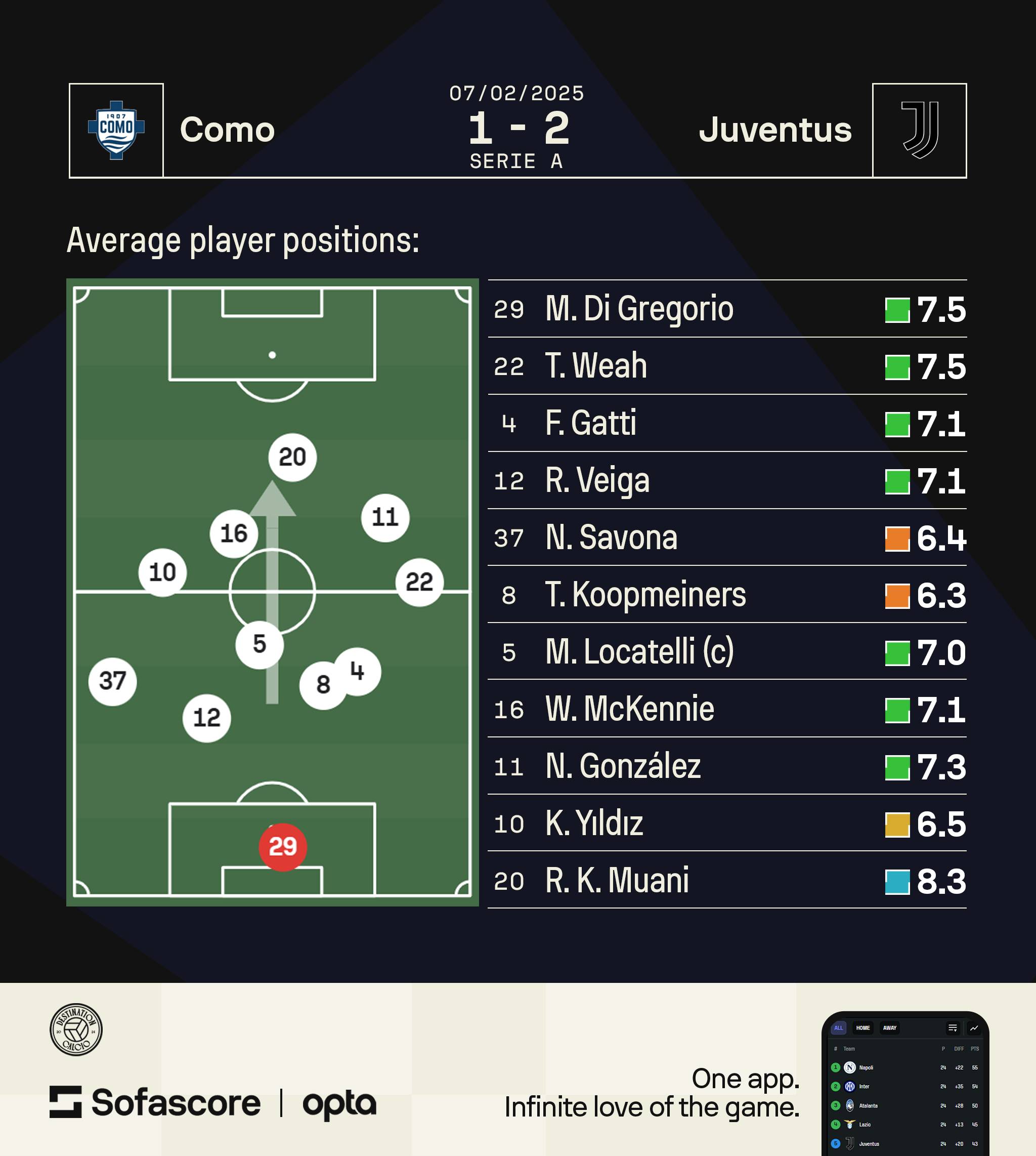 A textbook example of this is his first goal in the win over Como. Receiving a ball between the lines from Nico Gonzalez, Kolo Muani ran at Como defender Alberto Dossena, skipped by him and leathered his shot into the roof of Jean Butez’s net from a tight angle. It was the kind of goal Vlahovic simply isn’t capable of scoring.