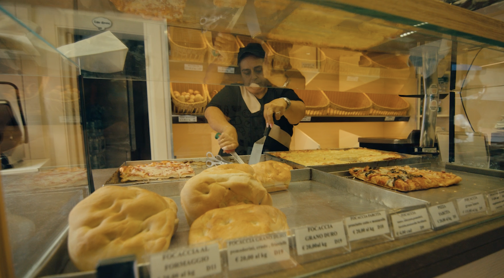 Among the goods available are a host of stuffed focaccia and pizza slices, all of which are baked on site, in a four-tier oven in the depths of the shop.