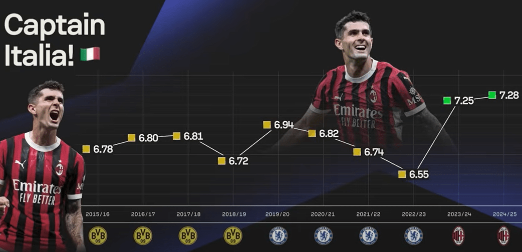 CBS Sports analyst Marco Messina said: “Milan’s season was a disappointment but Pulisic was the only saving grace. You can see it in his score (7.28), the biggest he’s had. The biggest knock he had was that he didn’t show up in decisive games. Last season he turned that around and did it against Inter, against Juventus and of course, in the Champions League against Liverpool and Real Madrid. He earned Milan 17 points on his own between goals and assists.”