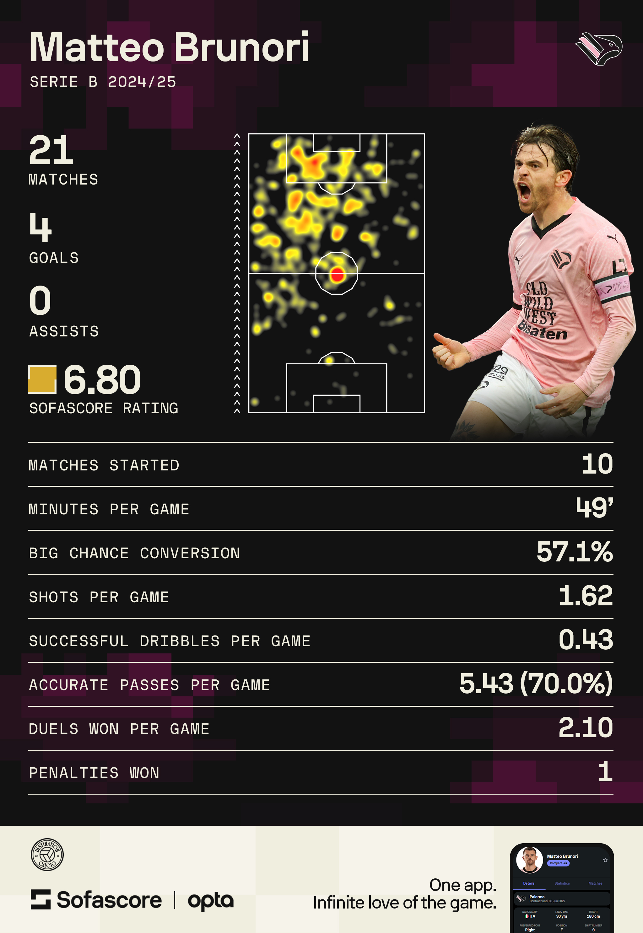 Only 19th-placed Sudtirol have conceded more goals than Davide Possanzini’s men, who have won just once in their last seven games. It is a chance Palermo cannot afford to spurn, as Brunori knows all too well.