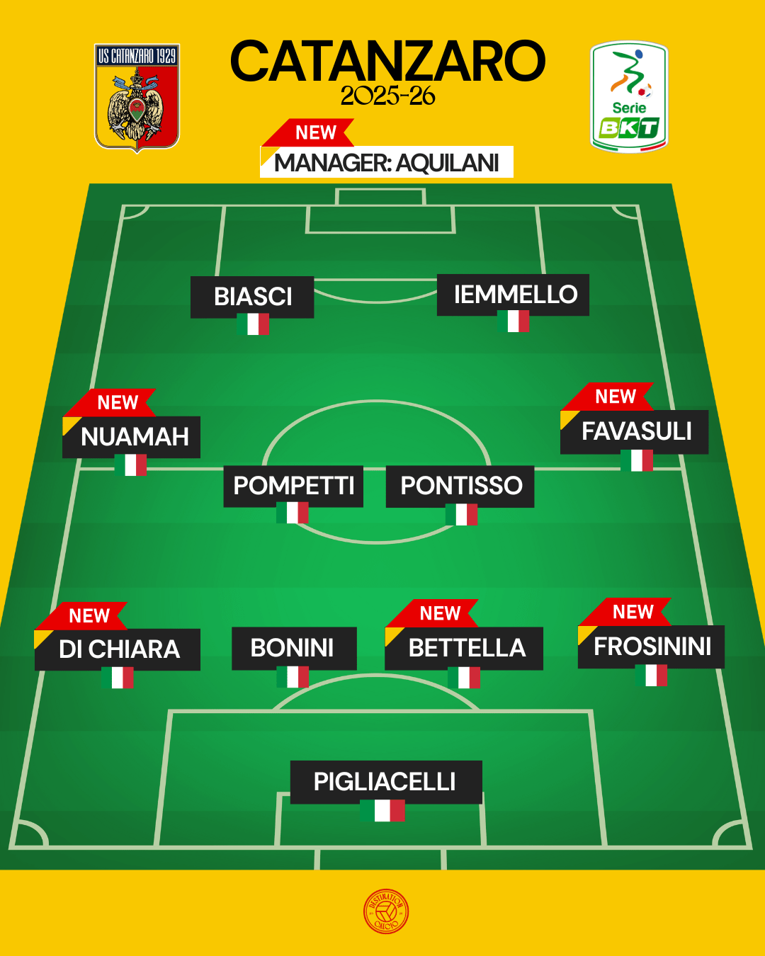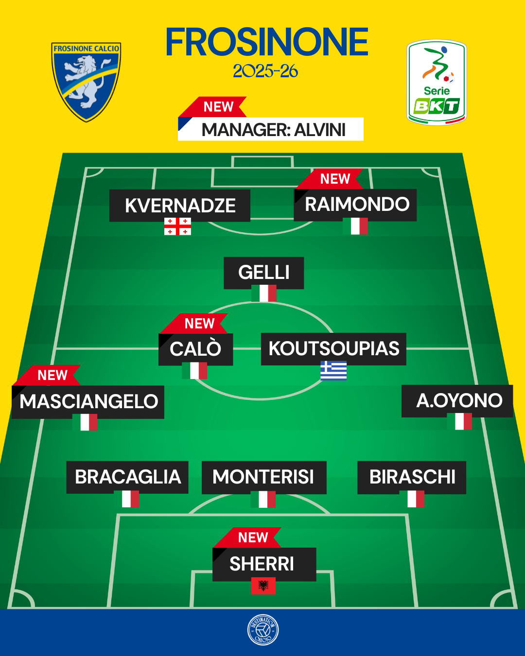 Massimiliano Alvini is the new man in charge, taking over from Paolo Bianco, whose 4-3-3 formation is set to make way for his successor’s preferred 3-5-2 and 3-4-1-2 set-up.