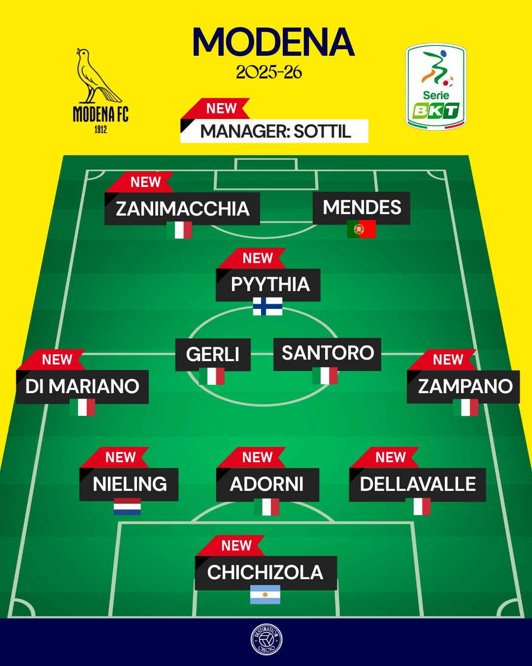 Elsewhere, experience has been added in the shape of centre-back Davide Adorni, right-back Francesco Zampano and goalkeeper Leandro Chichizola, who arrived on free transfers from Brescia, Venezia and Spezia respectively.