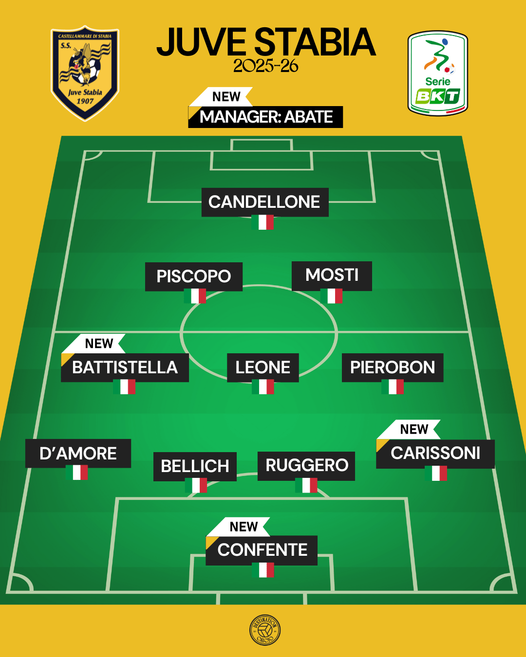 Abate stuck to a four-man defence last season, mostly in a 4-2-3-1 formation and occasionally switching to a more prudent 4-3-2-1, while Juve Stabia’s colours were firmly tied to the 3-4-2-1 mast under Pagliuca.