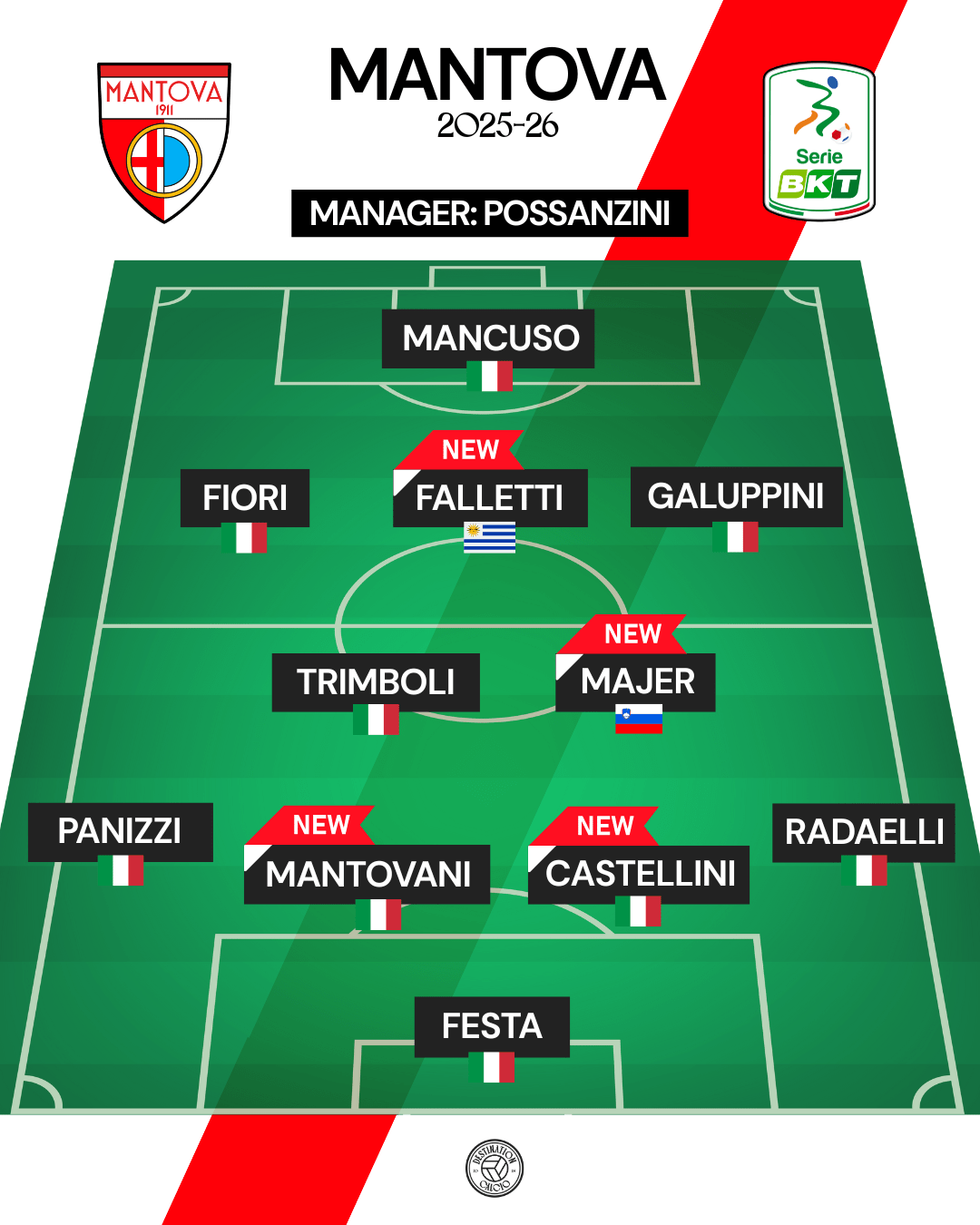 Expected starting XI (4-2-3-1): Festa; Radaelli, Mantovani, Castellini, Panizzi; Trimboli, Majer; Galuppini, Falletti, Fiori; Mancuso