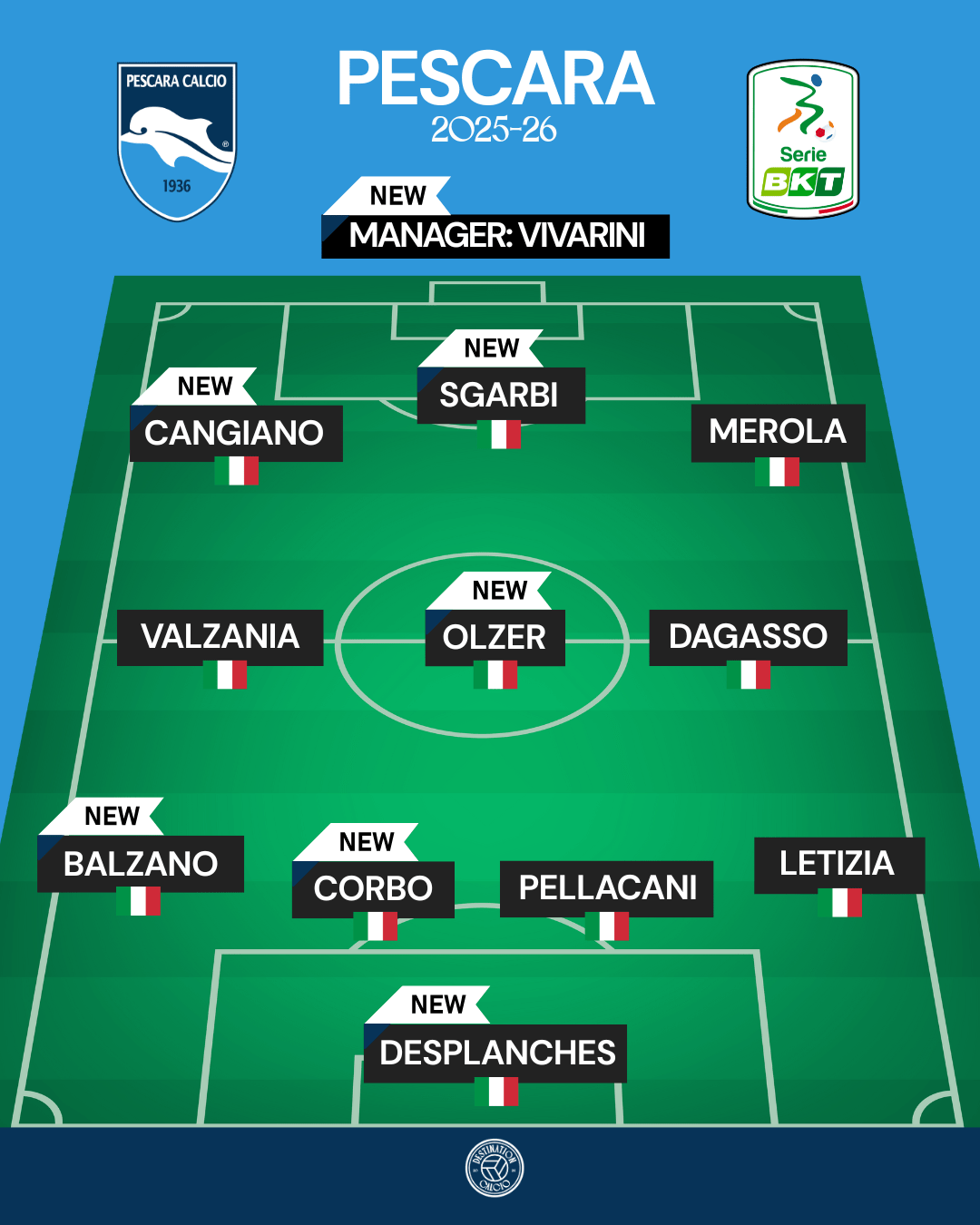 Back in calcio’s second tier after successfully navigating their way through the play-offs and beating Ternana on penalties in the final, Pescara are determined to avoid a swift return to Serie C.