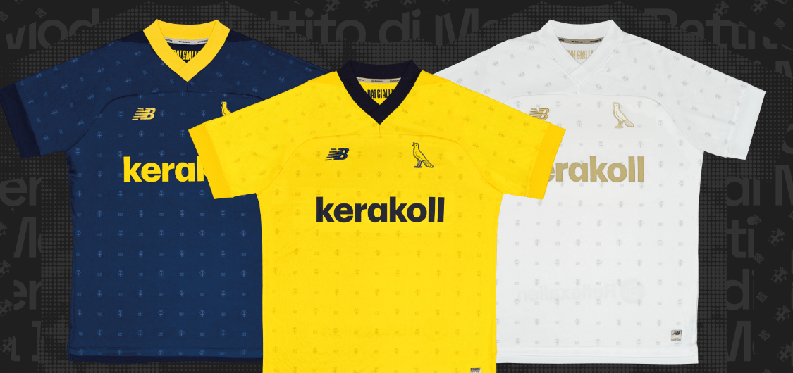 Three in one swift go for the men from Modena. They revealed the home (yellow), away (navy) and third (white) kits at the same time.