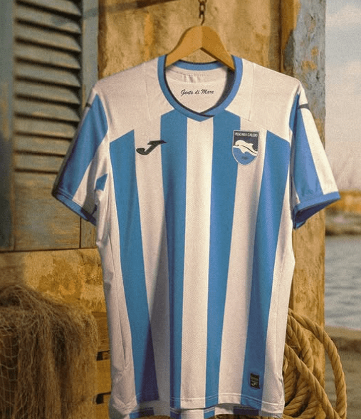 Pescara booked their return to Serie B by beating Ternana on penalties in the play-off final and they’ve kept it simple for the home kit they will wear back in the second division.