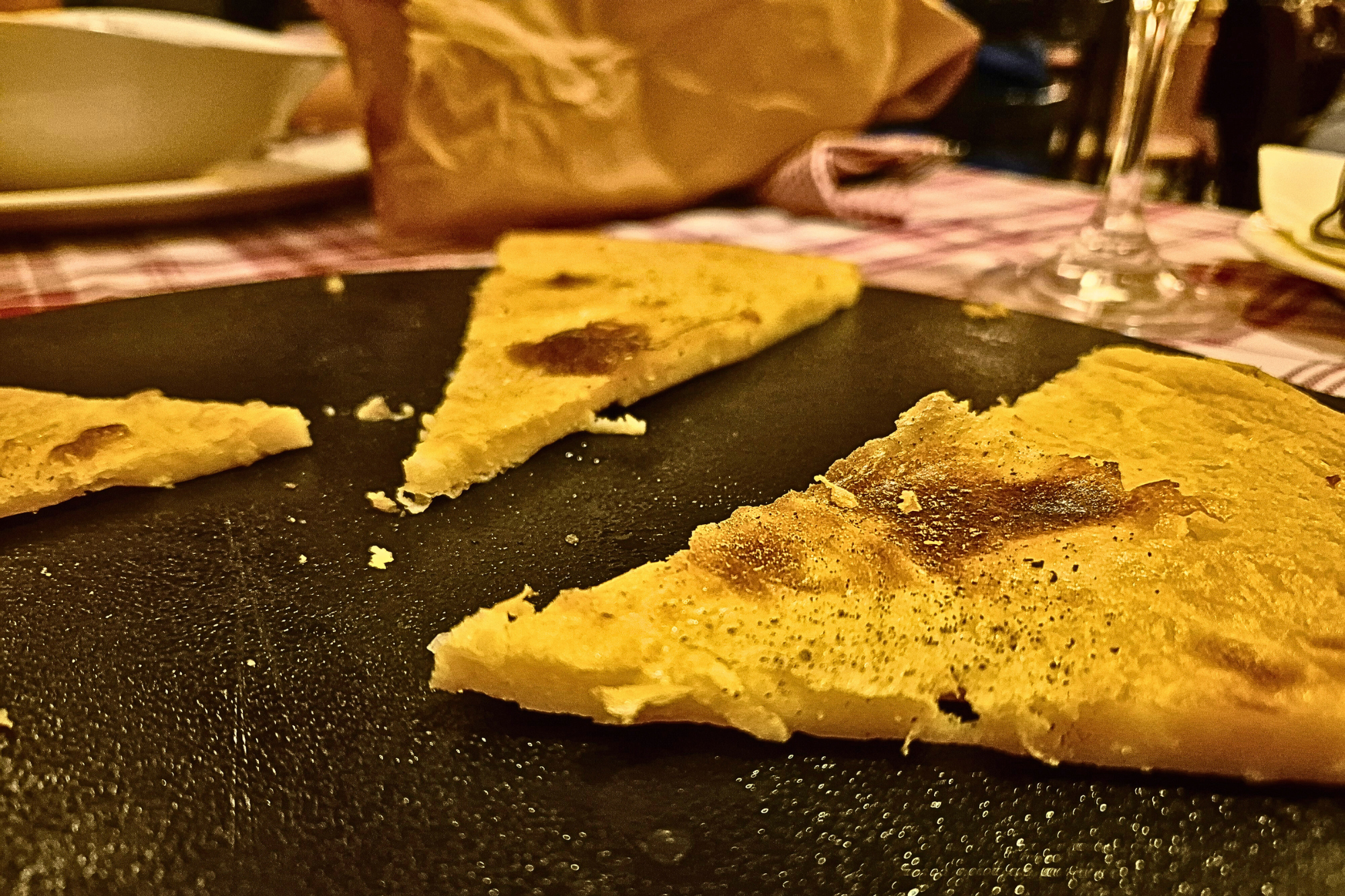Dan chose the Farinata, a street food item that resembles a pizza base without toppings. It has a soft, custardy centre and a crisp, brown exterior.