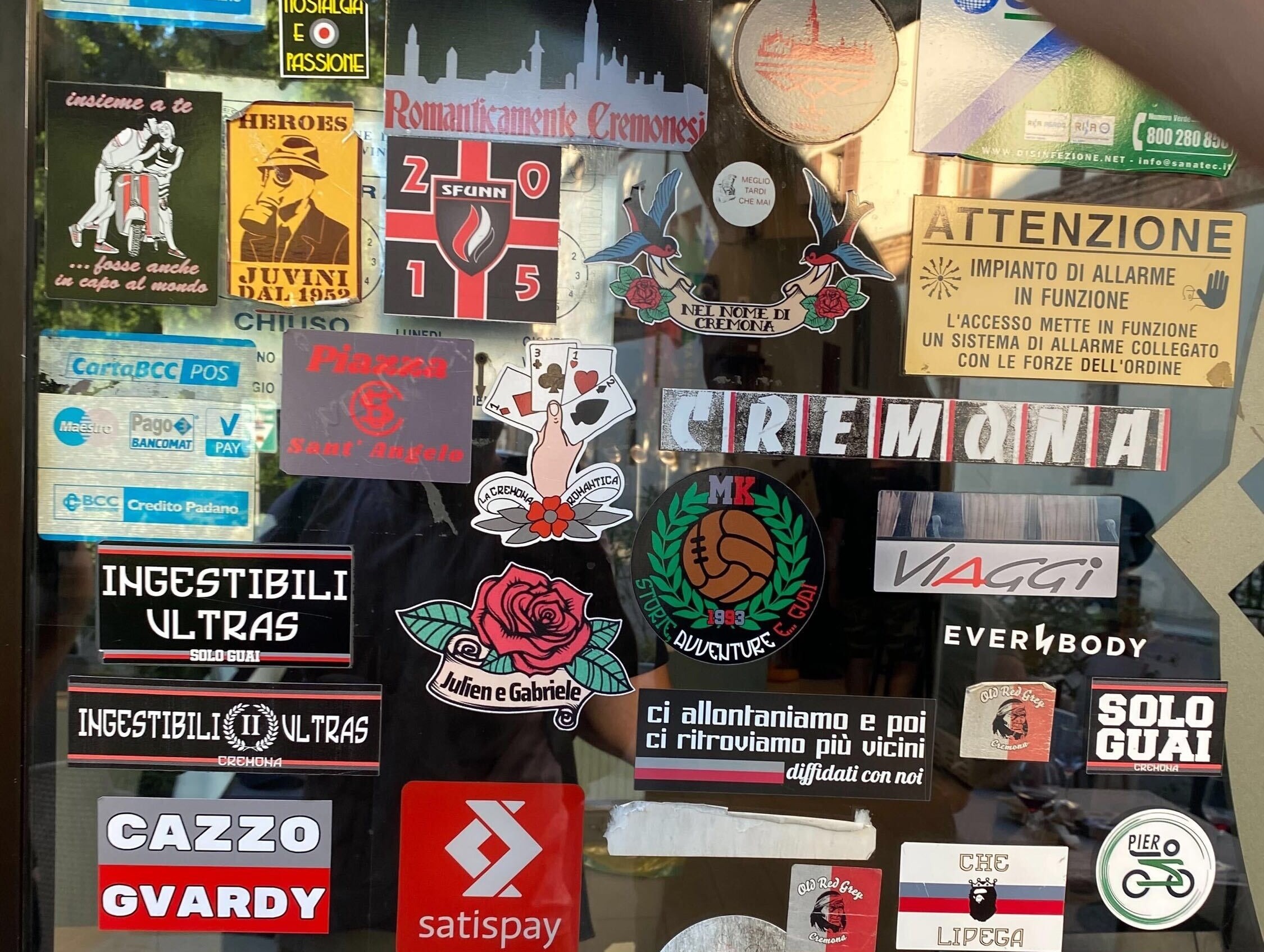“He’s an underdog and this city loves an underdog,” says Filippo, as he points out stickers in which the badges of Atalanta and Piacenza, both local rivals, have been crossed off.
